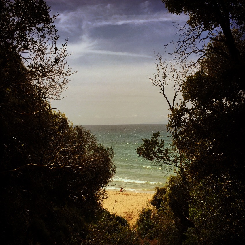 E bagno sia. A Cala Violina ci sei già stato una volta, ricordi? Forse no, era una vita fa. Anzi due a pensarci bene. Mentre il prof. si addormenta sulla sabbia ti infili lentamente nell’acqua, non così fredda (però non sono passate tre ore da quando vi siete ingozzati di sopprassata e fo’accia, deh), bellissima. Ti senti contento, mentre ritornate attraverso la pineta al furgone. Ora e qui è già bello, ma lo è ancora di più guardando la prospettiva di fronte a te, che appare semplice, limpida.